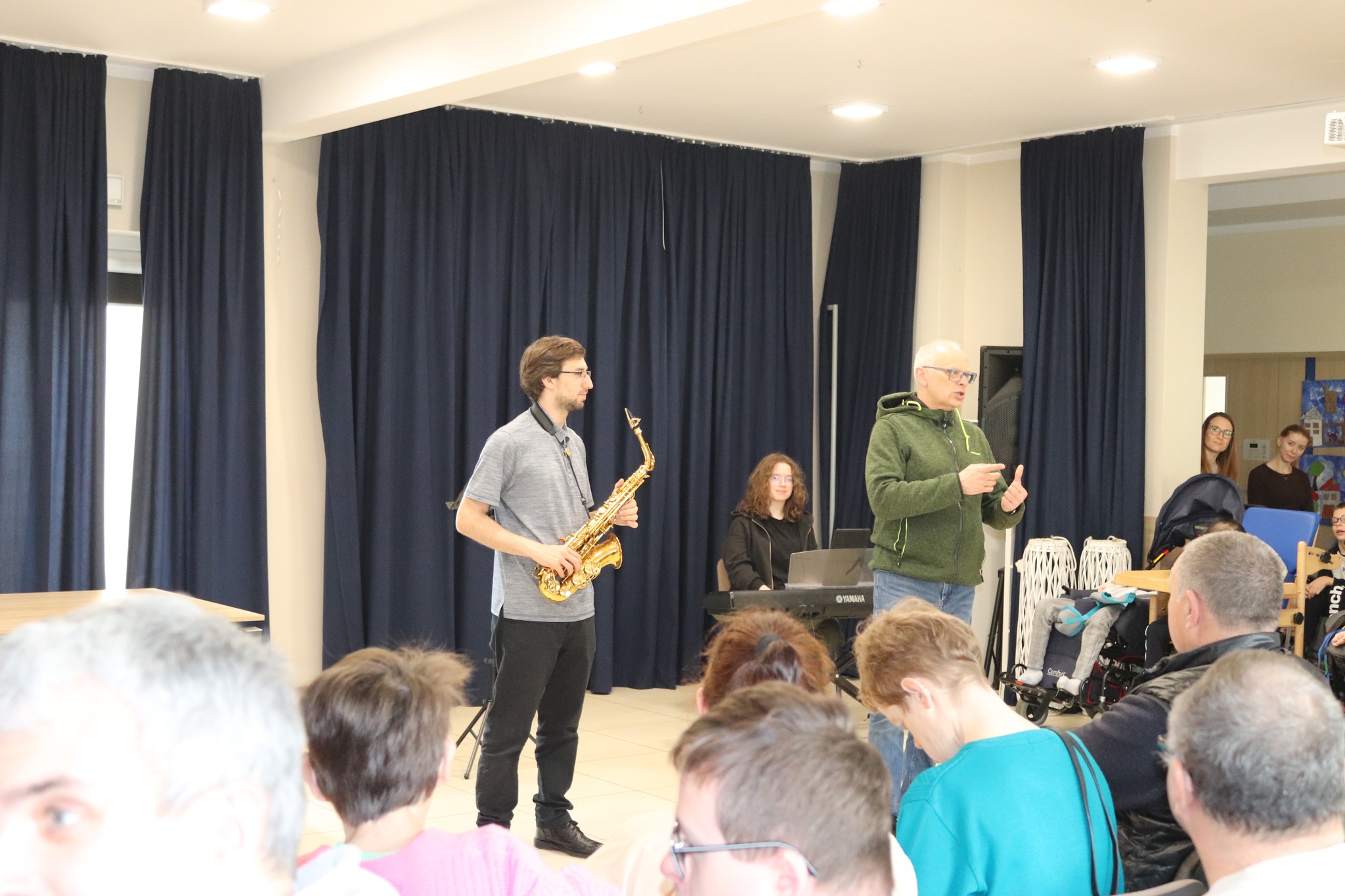 16 kwietnia mieliśmy przyjemność gościć muzyków z Filharmonii Śląskiej w Katowicach, którzy poprowadzili spektakularne warsztaty muzyczne w formie audycji edukacyjnej. Było to niezwykle fascynujące spotkanie, pełne dźwięków i wspólnego odkrywania muzyki. Uczestnicy Świetlicy Terapeutycznej oraz uczniowie i wychowankowie DOREW z ogromnym zaangażowaniem uczestniczyli w oryginalnych zajęciach muzycznych, chłonąc wiedzę i czerpiąc wiele radości z kontaktu z muzyką na żywo. Z całego serca dziękujemy muzykom za poświęcony czas, ciepło, pasję oraz stworzenie wyjątkowej atmosfery, która na długo pozostanie w naszej pamięci.